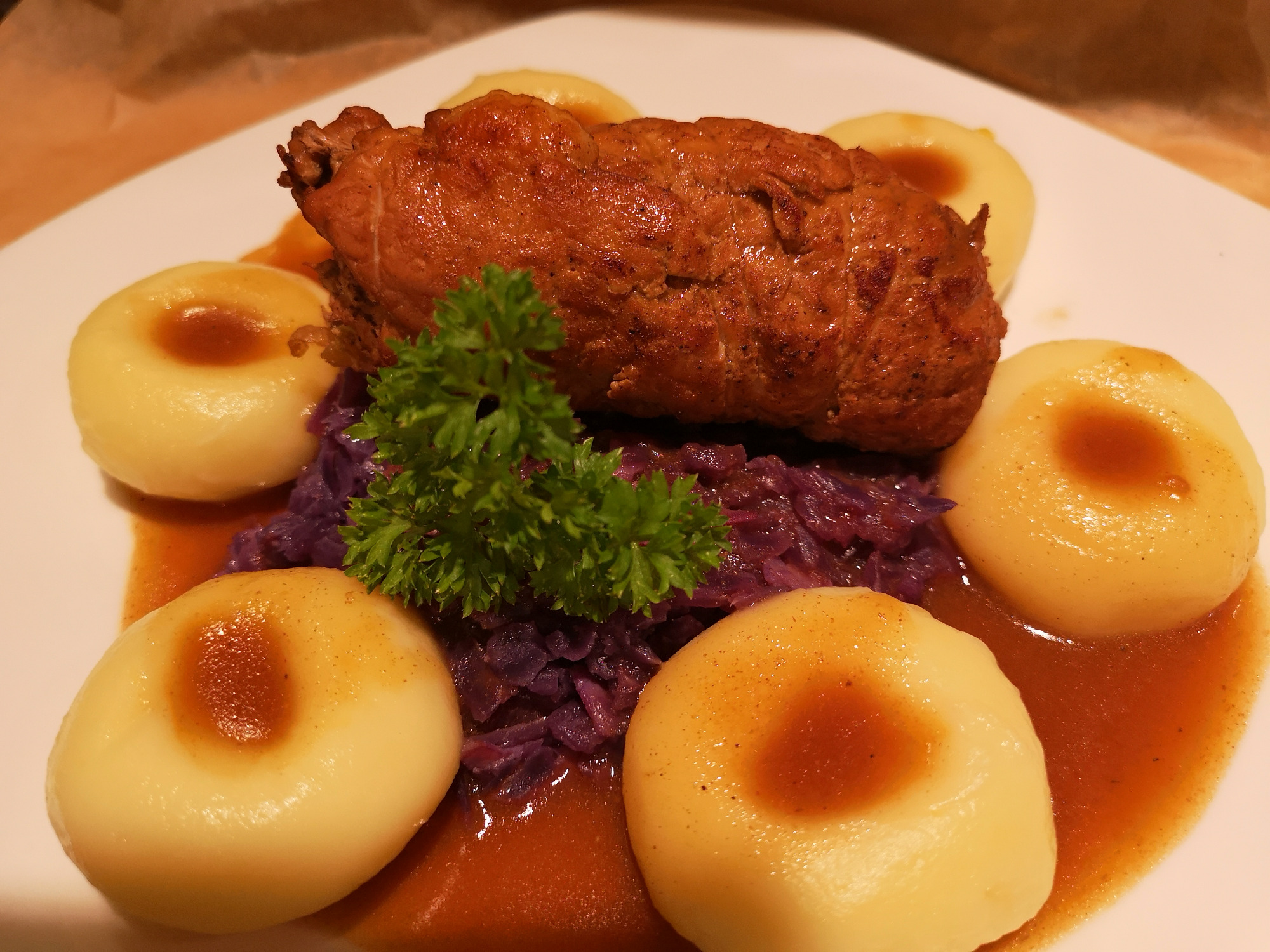 ROLADA WIEPRZOWA, KLUSKI ŚLĄSKIE I MODRĄ KAPUSTĄ -